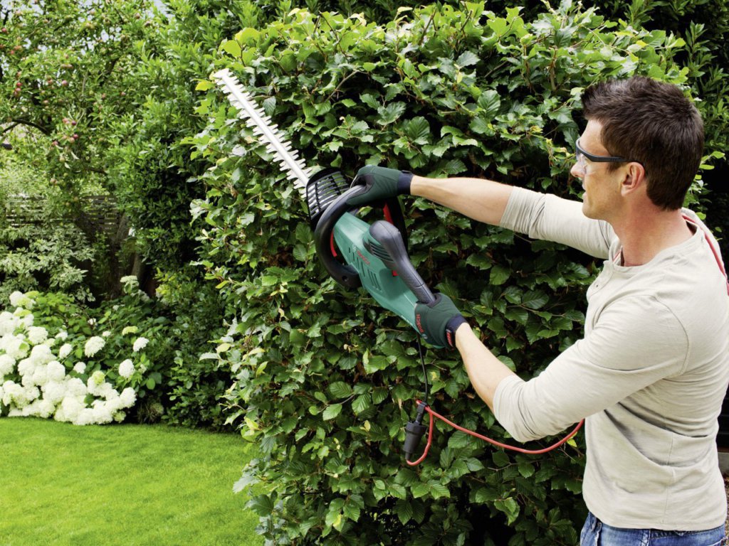 A volte semplicemente l’utilizzo del tagliasiepi è d’obbligo. Che si tratti di potare delle siepi, di accorciare i rami sporgenti dei cespugli o di creare delle figure artistiche, il tagliasiepi è uno strumento universale che può essere impiegato per i più svariati usi. Se confrontato con i modelli della stessa famiglia, come il tagliasiepi manuale, quello alimentato a batteria o il modello con motore a benzina, il tagliasiepi elettrico è quello che meglio si addice alle aree di piccole e medie dimensioni. Per via del cavo alimentatore che deve essere sempre presente, l’area di utilizzo non deve essere troppo lontana dalla fonte di energia, in caso contrario si renderà necessario l’impiego di prolunghe. Il momento giusto per il taglio di una siepe è determinato fondamentalmente dalla crescita delle singole piante. Alcune conifere coltivate a siepe, come ad esempio la tuia, di norma devono essere potate solo una volta all’anno, mentre altre come le latifoglie esigono una potatura due volte all’anno, in primavera e in autunno. A tutela degli uccelli che nidificano in quel periodo, non è permessa una potatura troppo intensiva. In quel periodo anche prima di un taglio di pochi centimetri occorre verificare che non vi sia alcun nido nella siepe.